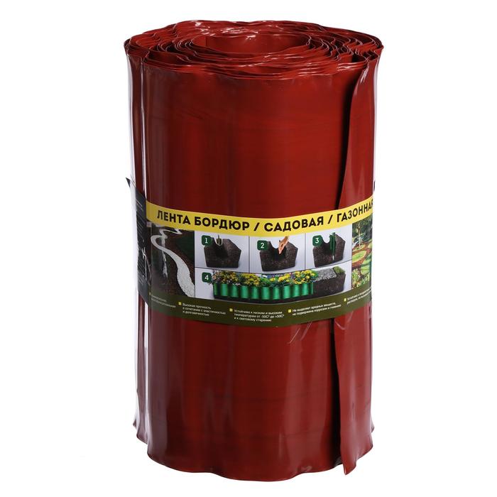 Лента бордюрная, 30 см × 9 м, толщина 0.6 мм, гофра, пластиковая, коричневая
