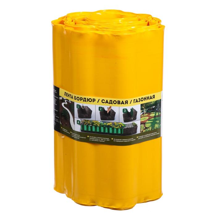Лента бордюрная, 30 см × 9 м, толщина 0.6 мм, гофра, пластиковая, жёлтая