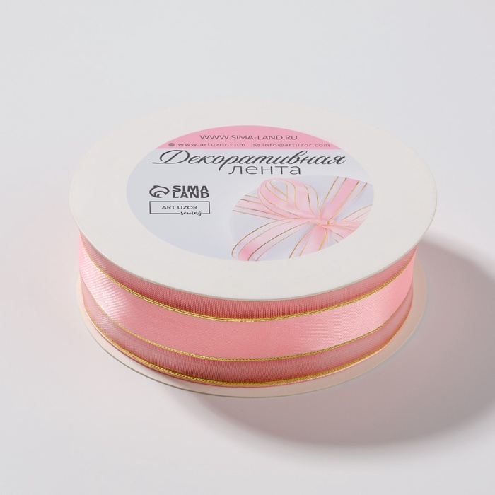 Лента декоративная, капроновая/атласная, с люрексом, 25 мм, 18 ± 1 м, цвет розовый