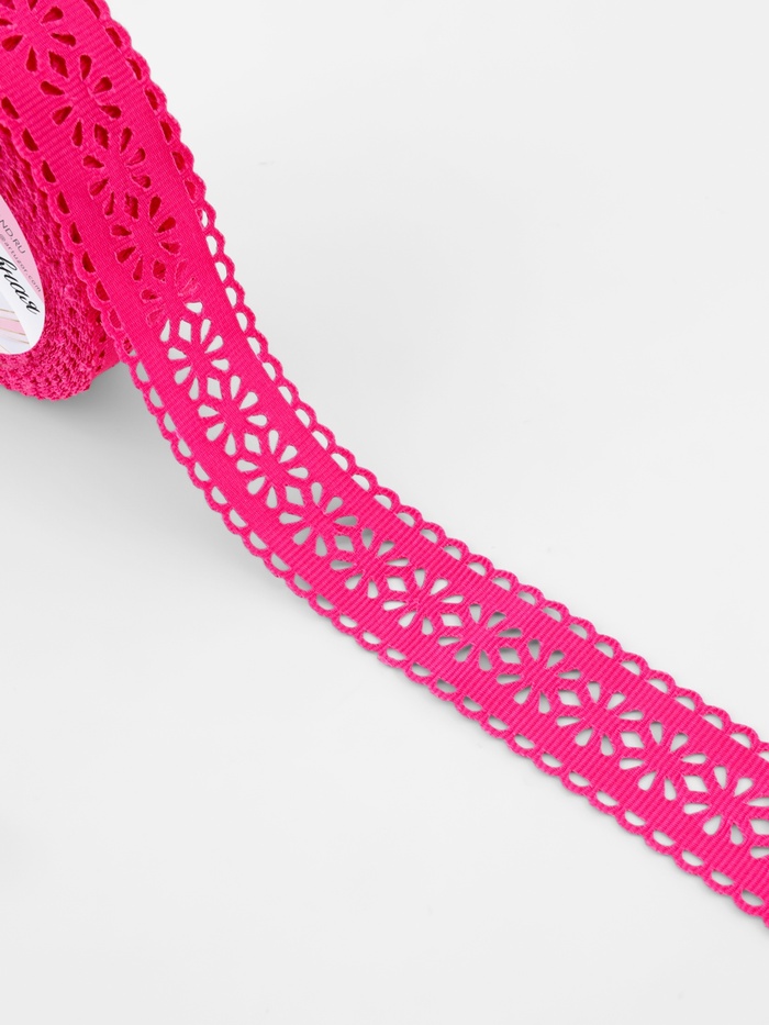 Эта малиновая ажурная лента придаст вашим проектам ощущение ручной работы и внимания к деталям. Её рельефный узор создаёт эффект нежного кружева, идеально дополняя скрапбукинг, упаковку подарков и создание украшений.