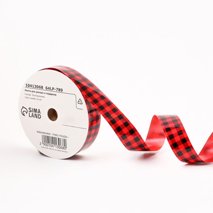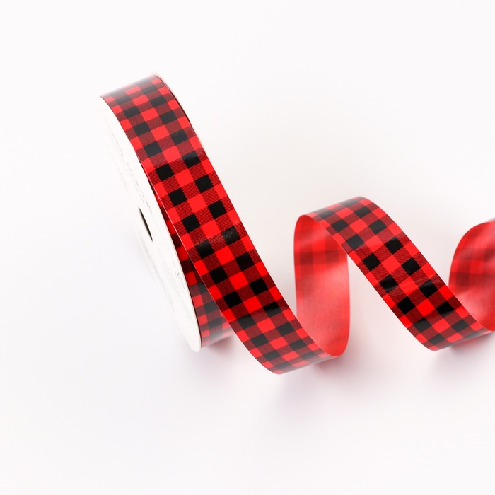 Лента для декора и подарков, «Клетка», красный, 2 см × 50 м