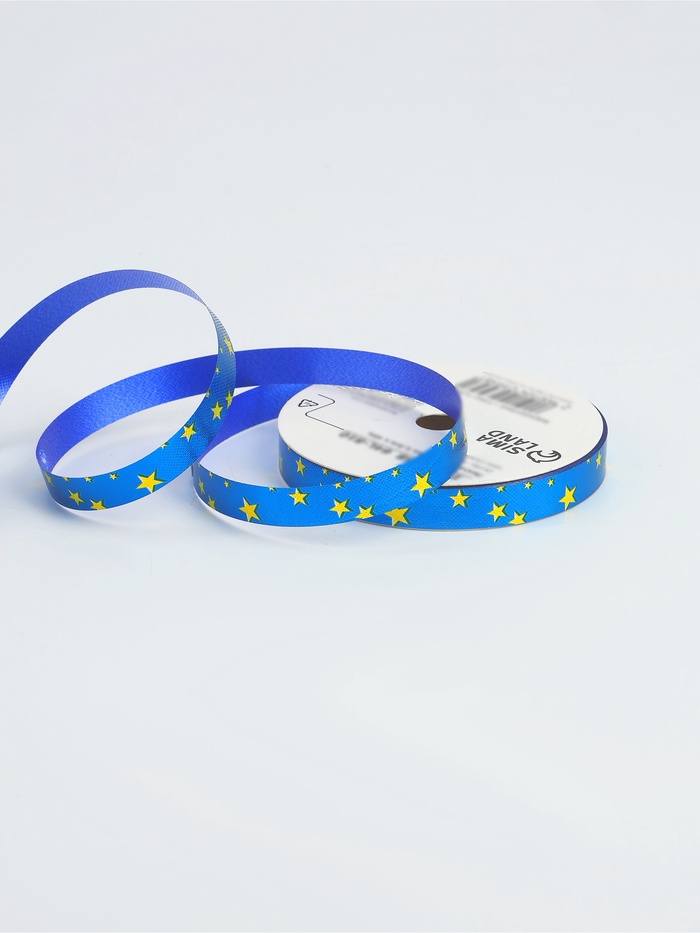 Лента для декора и подарков новогодняя новогодняя «Звезды», 1.2 см × 45 м, синий.