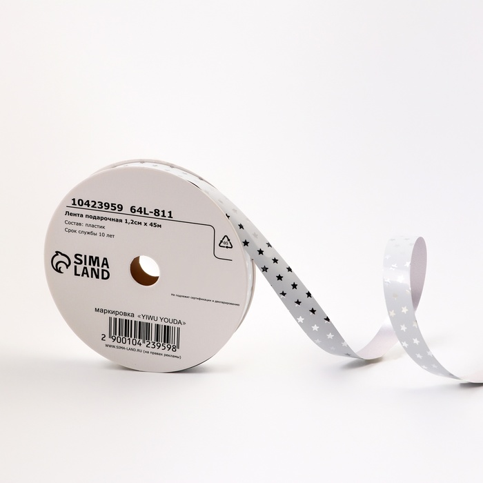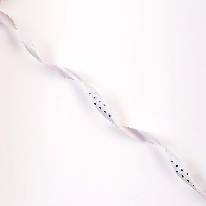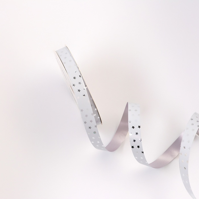 Лента для декора и подарков новогодняя новогодняяя «Звездочки металлик», 1.2 см × 45 м, белая