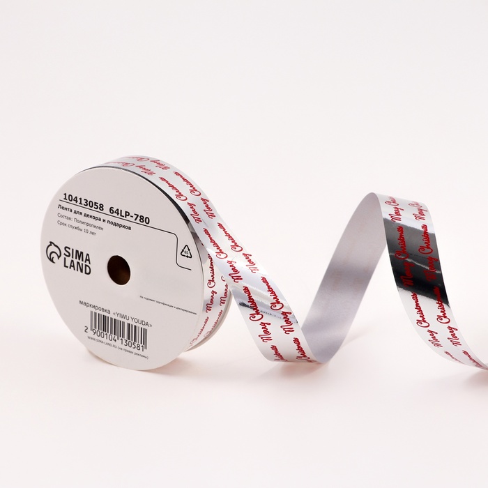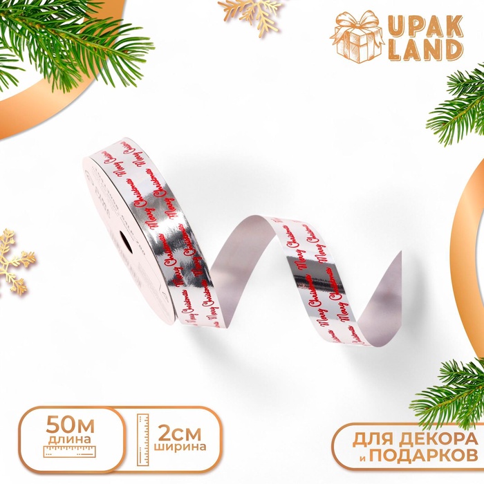 Лента для декора и подарков новогодняя, «С рождеством», красная, 2 см × 50 м