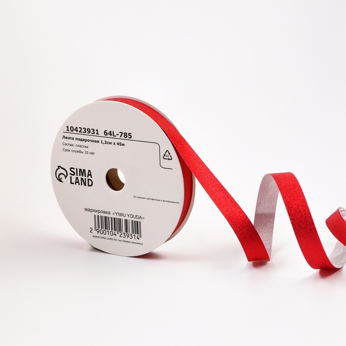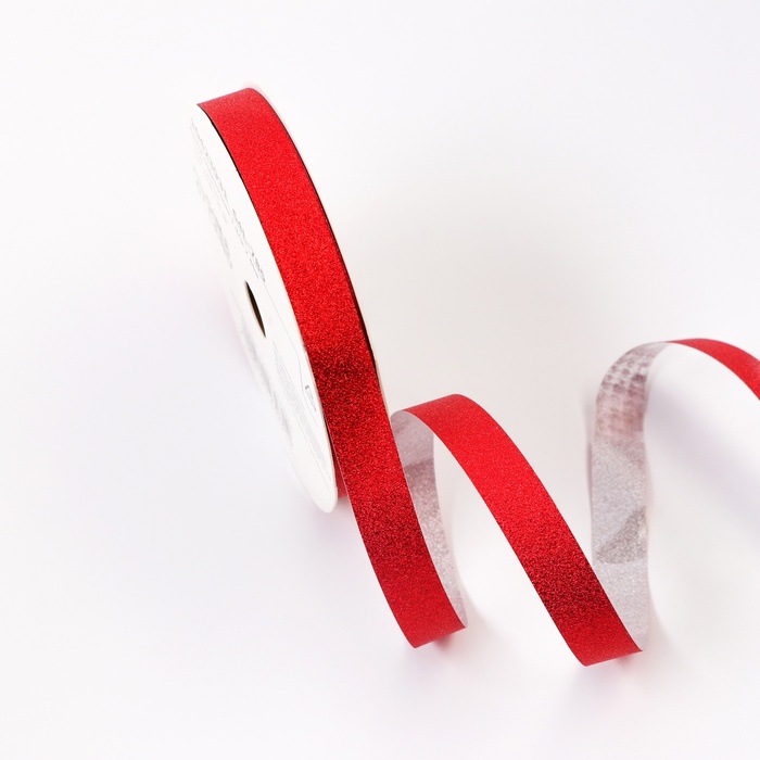 Лента для декора и подарков с глиттером «Тиффани», 1.2 см × 45 м, красная