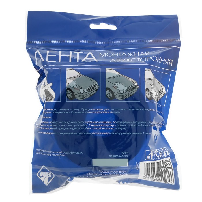 Клеящая лента Nova Bright — это крепёжный элемент, который способен выдерживать большие нагрузки. Лента не растрескивается, не меняет цвет даже при длительном использовании. Двусторонняя клейкая поверхность идеальна для соединения изделий из различных материалов. Подходит для проведения автомобильных работ.