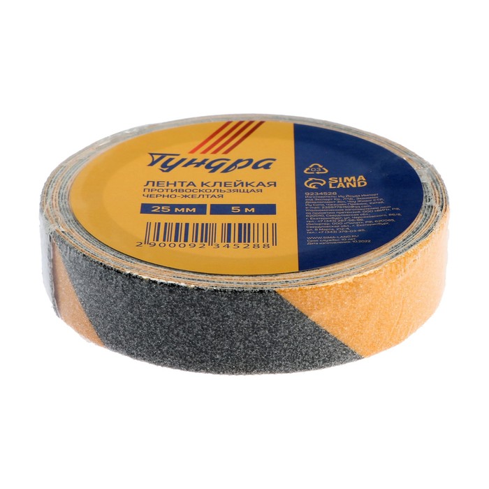 Лента клейкая ТУНДРА, противоскользящая, черно-желтая, 25 мм × 5 м