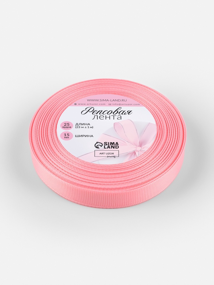 Лента репсовая, 15 мм, 23±1 м, светло-розовая №04