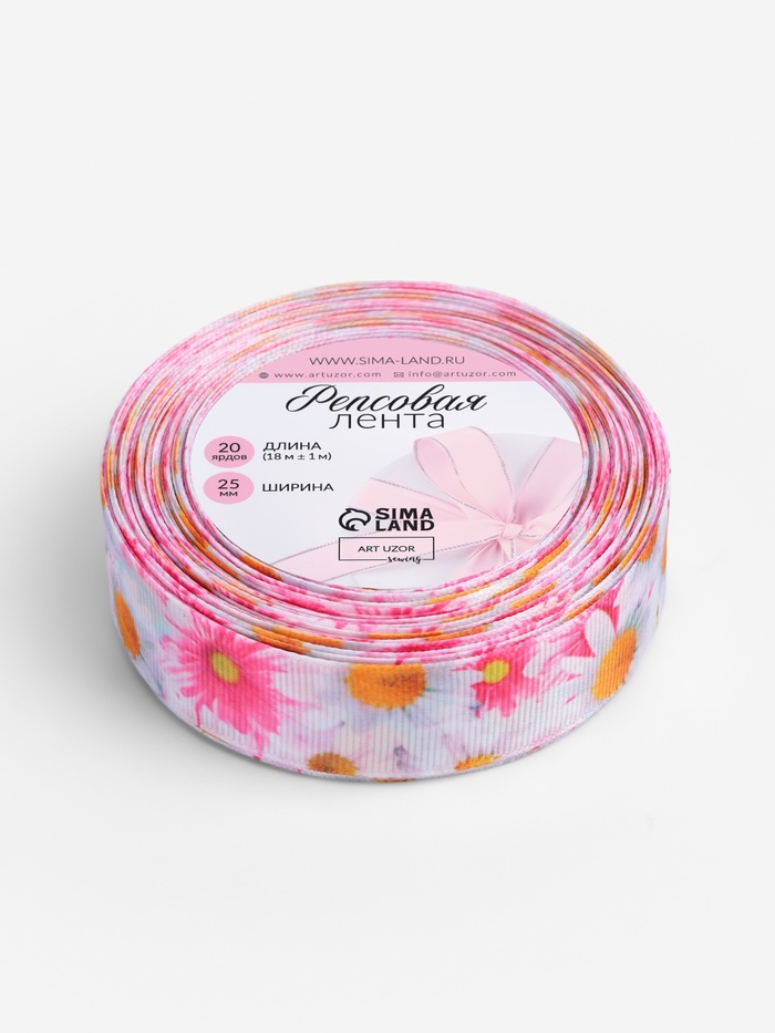 Репсовая лента с ромашками приносит в проекты свежесть летнего луга. Яркие цветы на текстурированной поверхности создают объёмный эффект, напоминающий полевые букеты. Восемнадцати метров хватит для весеннего декора, оформления подарков к 8 Марта и создания солнечного настроения в рукоделии.