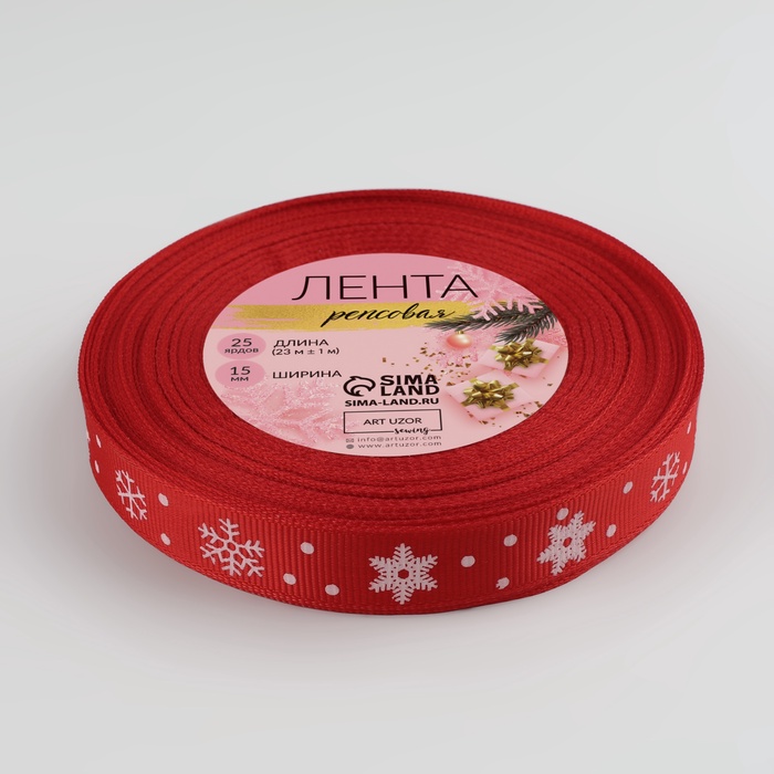 Лента репсовая «Снежинки», 15 мм, 23±1 м, красная