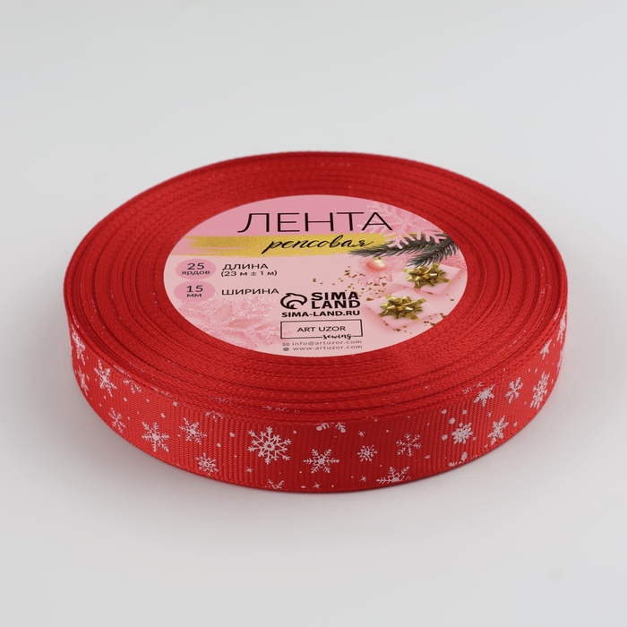 Лента репсовая «Снежинки», 15 мм, 23±1 м, красная №33