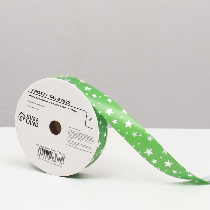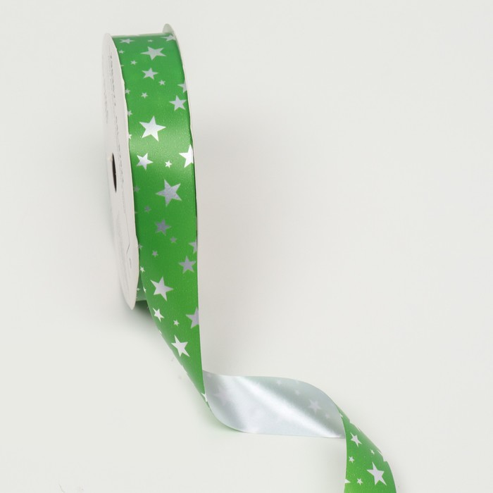Лента упаковочная для декора и подарков, зелёный "Звезды", 2 см × 45 м