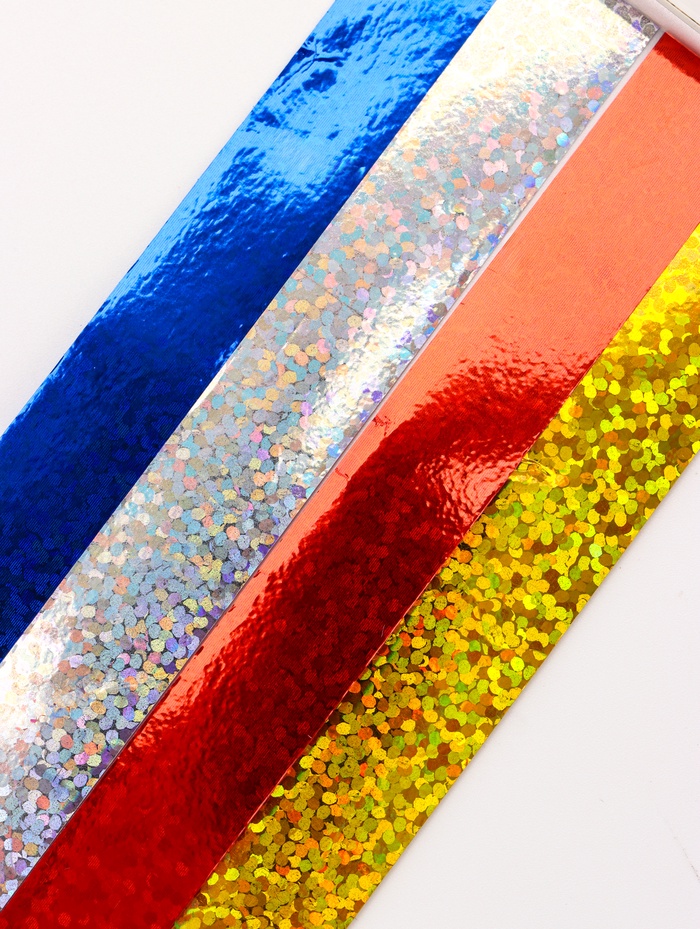 - Голографический эффект для «вау»-реакции: Пластиковая лента с голографическим покрытием переливается всеми цветами радуги, меняясь в зависимости от угла зрения и освещения. Это сразу делает подарок более дорогим и запоминающимся.