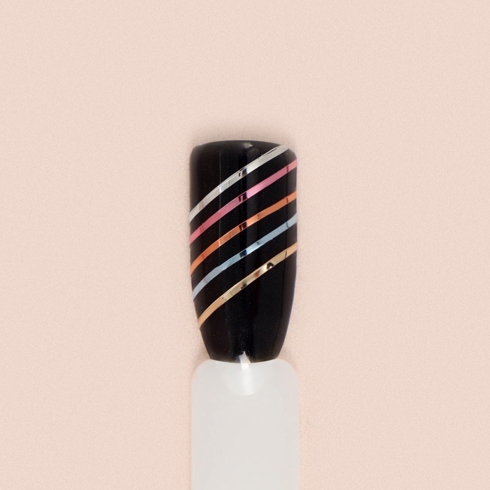 Лента представляет собой тонкую самоклеящуюся полоску для дизайна ногтей. Её можно использовать на лаковом, гель-лаковом или любом другом искусственном покрытии.