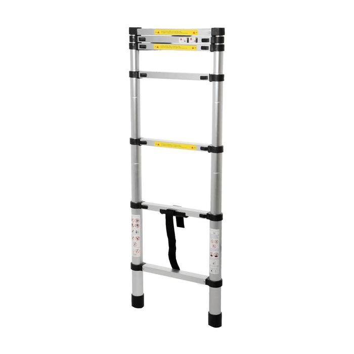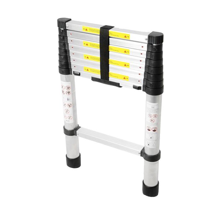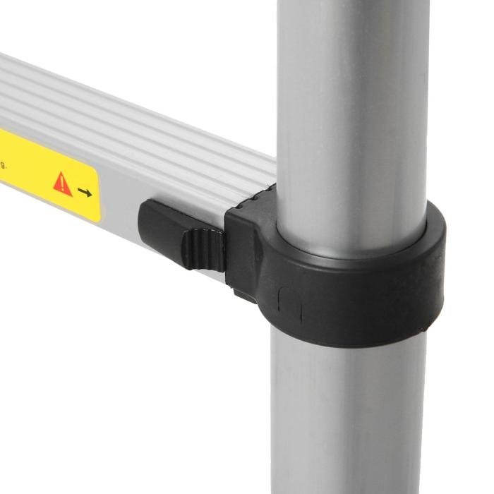 Лестница идеально подойдёт для тех, кто бережёт свободное пространство. В сложенном виде её высота не превышает 80 см, она прекрасно уместится в шкафу, на балконе и под кроватью. Для того чтобы её разложить, достаточно потянуть за верхнюю ступень вверх. Характерный щелчок означает, что уровень зафиксирован, можно вытягивать следующий. За пару секунд лестница увеличится с 80 см до 2 м, и так же быстро она собирается обратно.