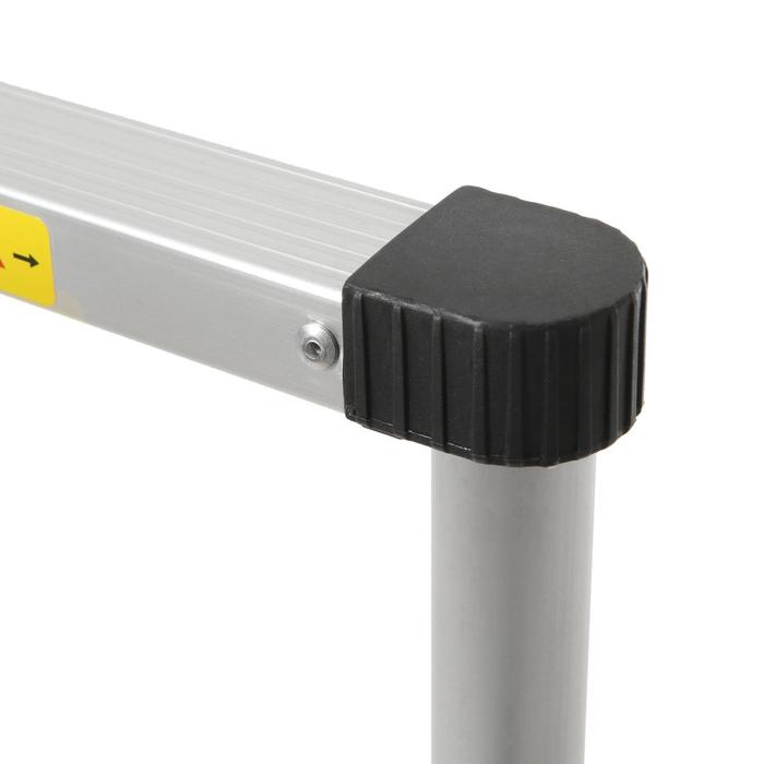 Лестница достаточно лёгкая, ведь изготовлена из алюминия. А для удобного хранения в комплекте идёт ремешок на липучке для фиксации.