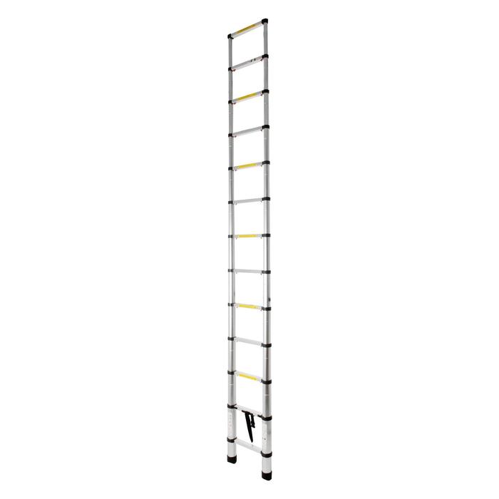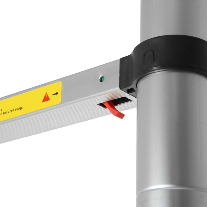 Лестница идеально подойдёт для тех, кто бережёт свободное пространство. В сложенном виде её высота не превышает 80 см, она прекрасно уместится в шкафу, на балконе и под кроватью. Для того чтобы её разложить, достаточно потянуть за верхнюю ступень вверх. Характерный щелчок означает, что уровень зафиксирован, можно вытягивать следующий. За пару секунд стремянка увеличится с 80 см до 2,2 м, а в виде лестницы (в разложенном состоянии) - до 4,4 м, и так же быстро собирается обратно.