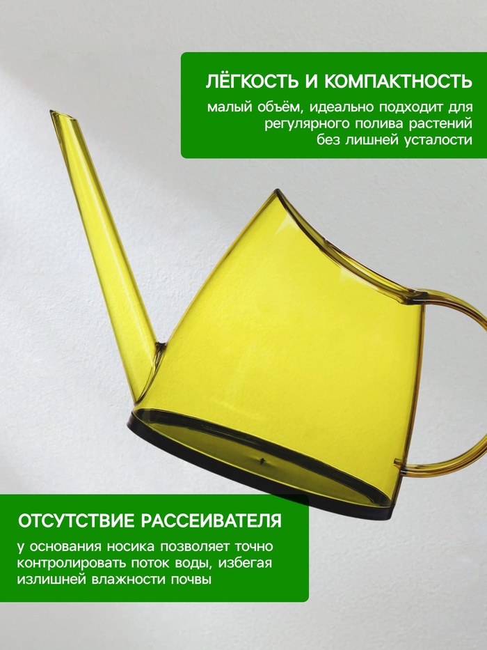 - Лёгкость и компактность — малый объём, идеально подходит для регулярного полива растений без лишней усталости.