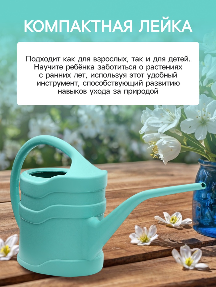 Эта компактная лейка подходит как для взрослых, так и для детей. Научите ребёнка заботиться о растениях с ранних лет, используя этот удобный инструмент, способствующий развитию навыков ухода за природой.