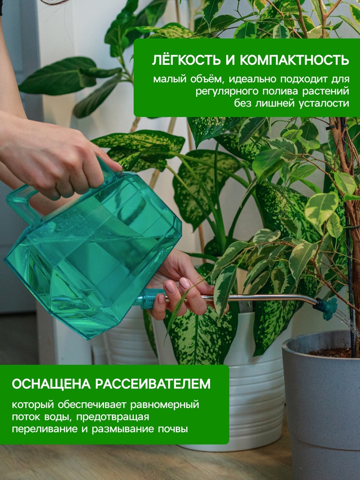 - Лёгкость и компактность — малый объём, идеально подходит для регулярного полива растений без лишней усталости.
