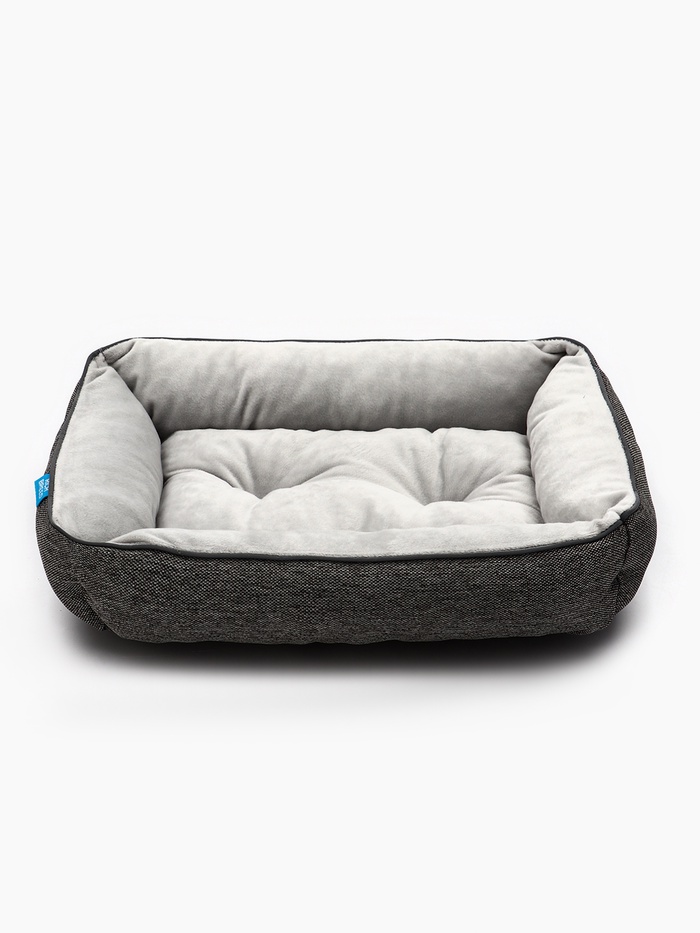 - Прямоугольная платформа — логика малогабаритного размещения: узкая форма позволяет поставить лежанку на подоконнике, на тумбе, в нише книжной полки или под столом — там, где овальные или круглые аналоги не встанут. Это не вынужденная экономия места, а осознанный выбор расстановки.