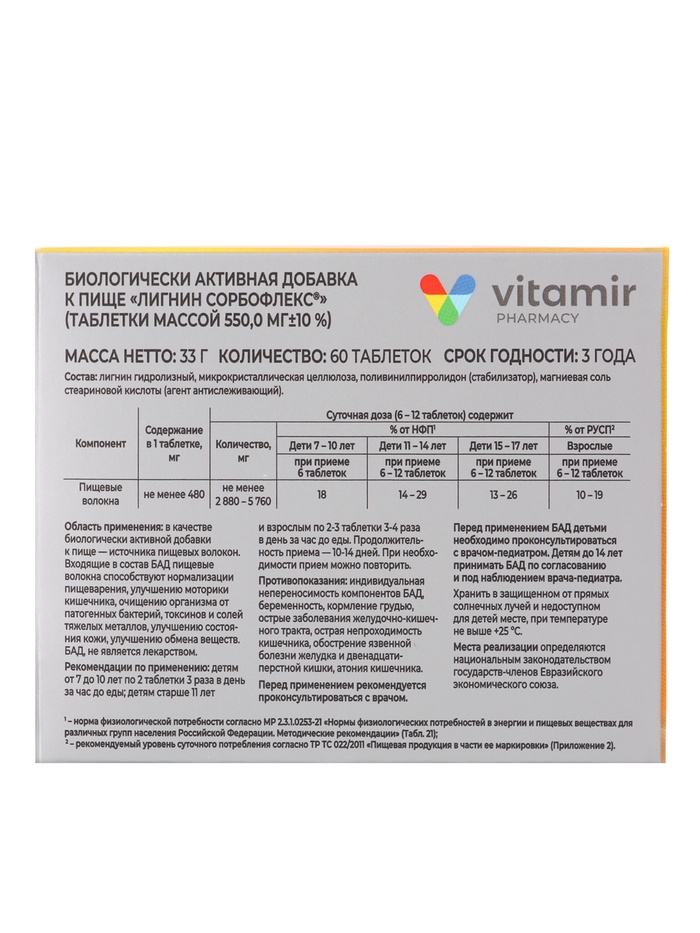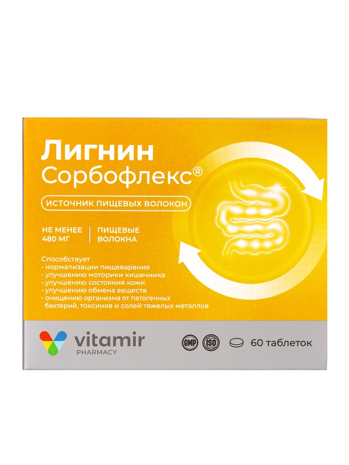 Лигнин Сорбофлекс «Витамир» TETRALAB — эффективный комплекс для выведения токсинов, шлаков и продуктов обмена из организма, а также для поддержки здоровья желудочно-кишечного тракта. Препарат способствует нормализации пищеварения, снижению нагрузки на печень и улучшению общего самочувствия.