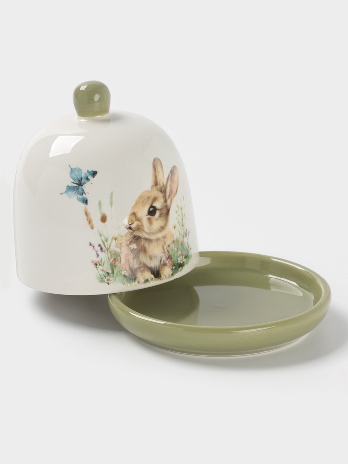 Очаровательная лимонница, выполненная из доломита с милым зайчиком. Сохранит свежесть лимона и станет украшением пасхального стола. Диаметр 9 см.