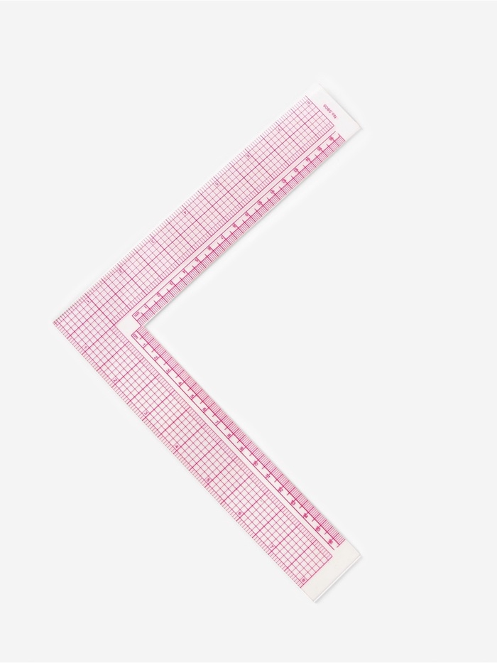 Такая линейка незаменима при кройке и шитье, особенно когда требуется отмерить угол или прочертить линию. Благодаря прямому углу вы будете уверены, что выкройка сделана с точностью до миллиметра и ваше платье или кофточка сядут по фигуре.