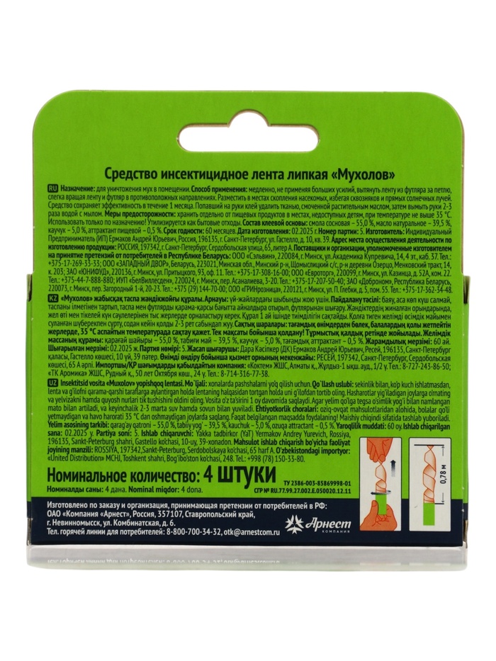 Липкая лента от мух MOSQUITALL, набор 4 шт.