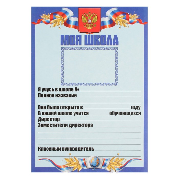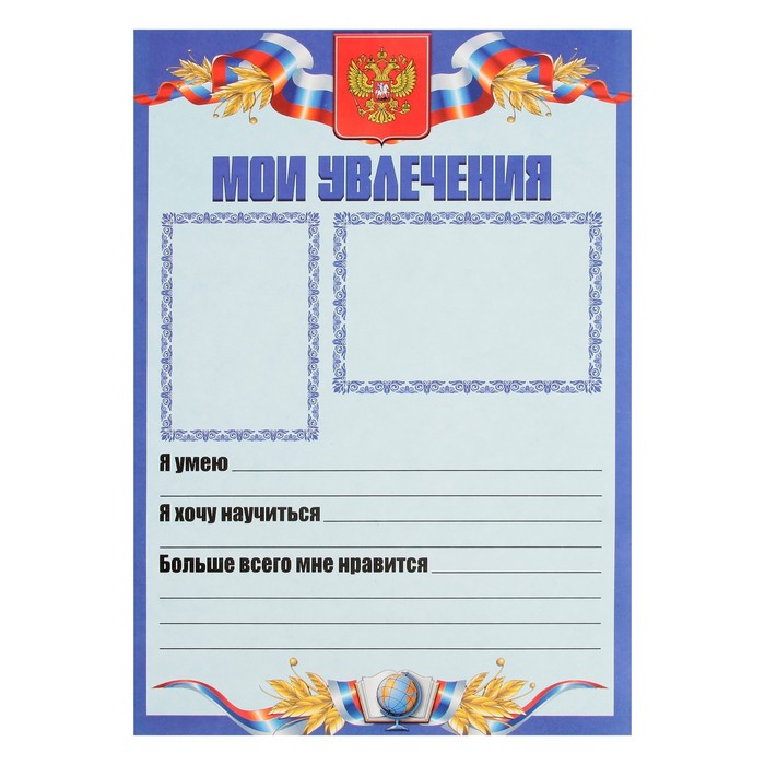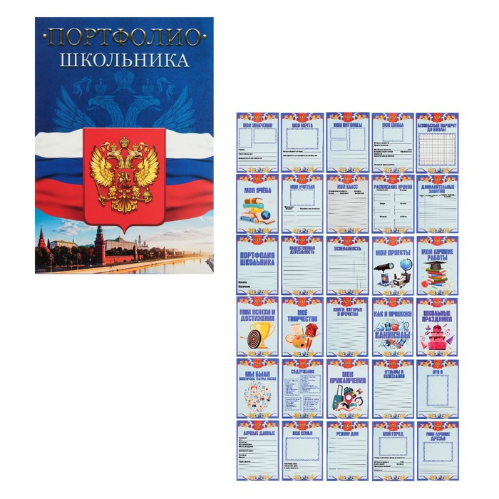 Листы-вкладыши для портфолио школьника, 30 листов (титульный, содержание, 28 разделов ) "Российский школьник", в папке