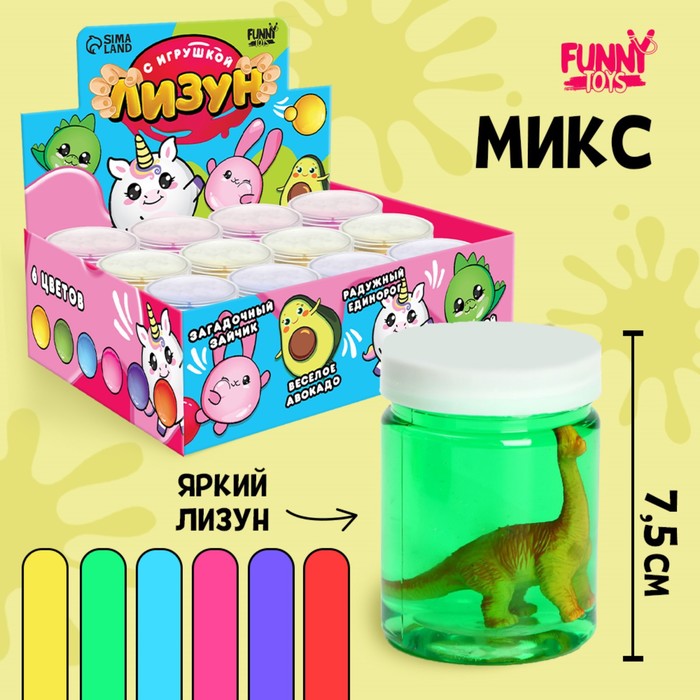 - Внутри лизуна находиться игрушка: её можно достать и играть ей отдельно.