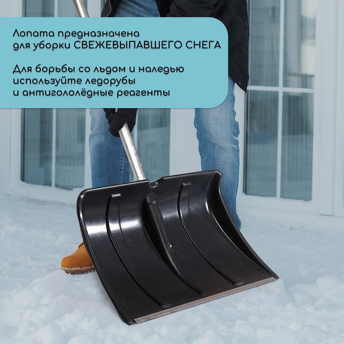 Лопата для уборки снега, пластиковый ковш 480×360 мм, алюминиевая планка, алюминиевый черенок, «Циклон»