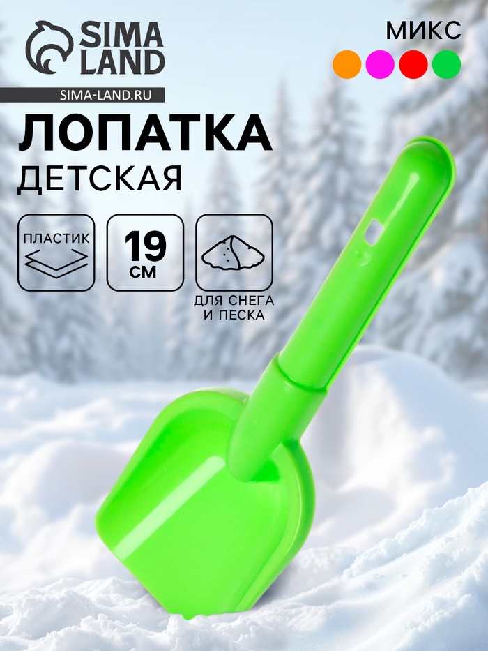 - Длина 19 см — удобный вариант для детей разного возраста. С такой лопаткой ребёнок сможет копать песок, рыхлить землю или строить крепости без лишних усилий.