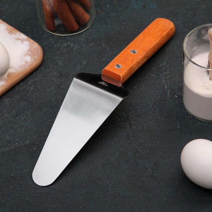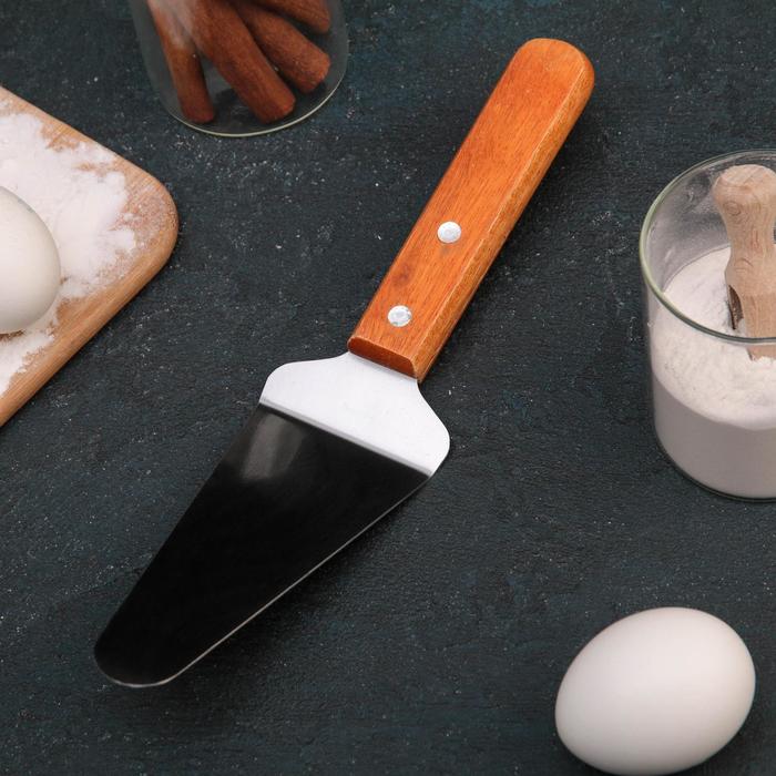 Представляем вашему вниманию идеальный инструмент для подачи любимых десертов и пиццы — лопатка «Доляна» размером 26x6 см. Этот стильный аксессуар сочетается с любым интерьером благодаря благородному сочетанию коричневого дерева и хромированной стали. Она станет вашим незаменимым помощником на кухне.