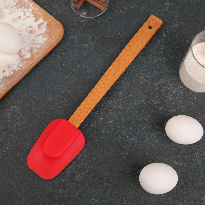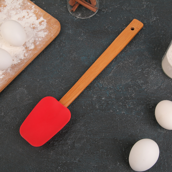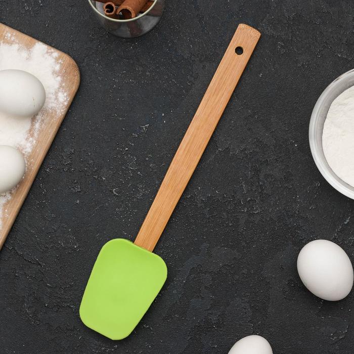 Изделие выполнено из пищевого силикона. Главное преимущество силиконовых лопаток – это то, что они не царапают поверхность посуды и не впитывают запахи, а также легко моются.