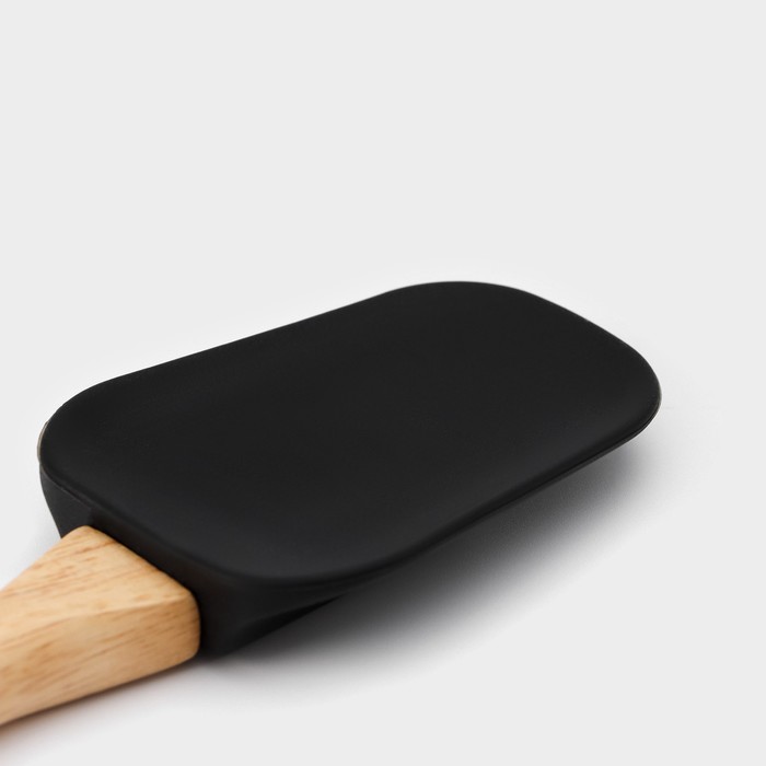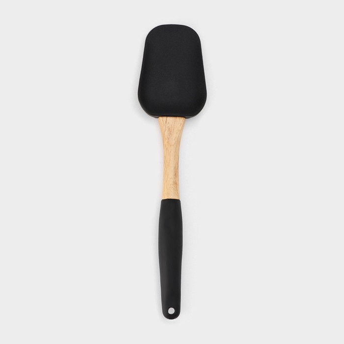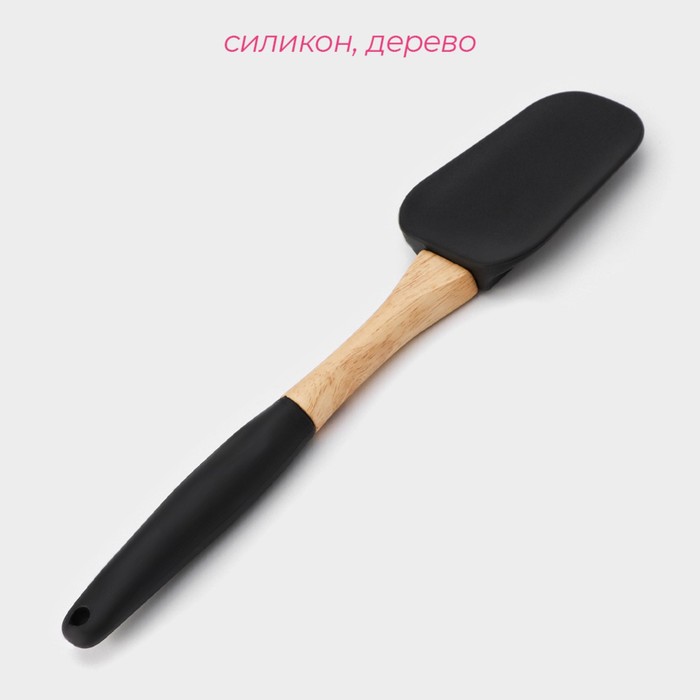 Изделие выполнено из пищевого силикона. Главное преимущество силиконовых лопаток – это то, что они не царапают поверхность посуды и не впитывают запахи, а также легко моются.
