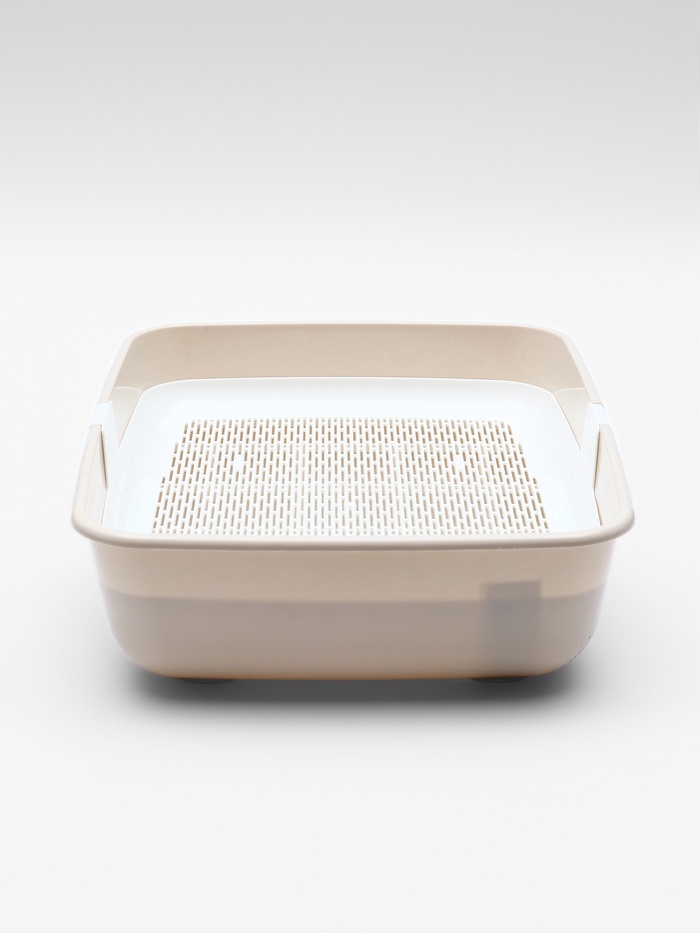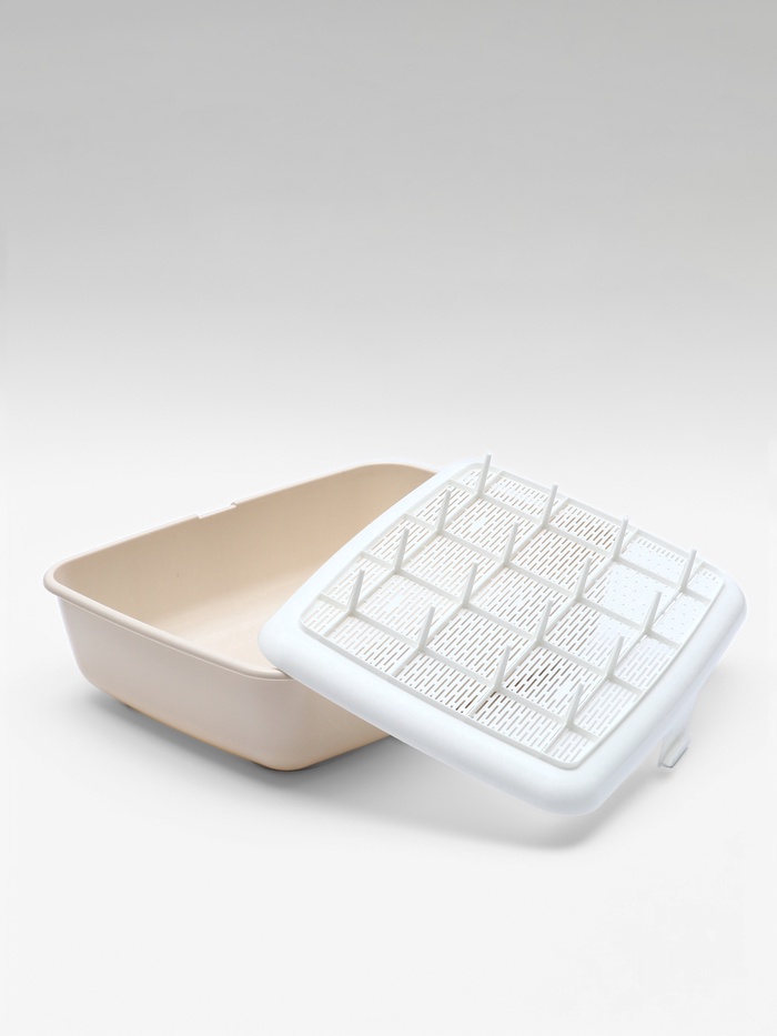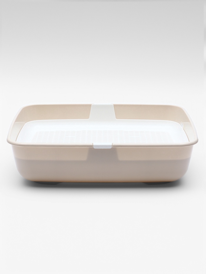 Сетка с высокими ножками позволяет использовать различные виды наполнителя или не использовать никакой, так как благодаря сетке ваш питомец точно не промочит лапки.