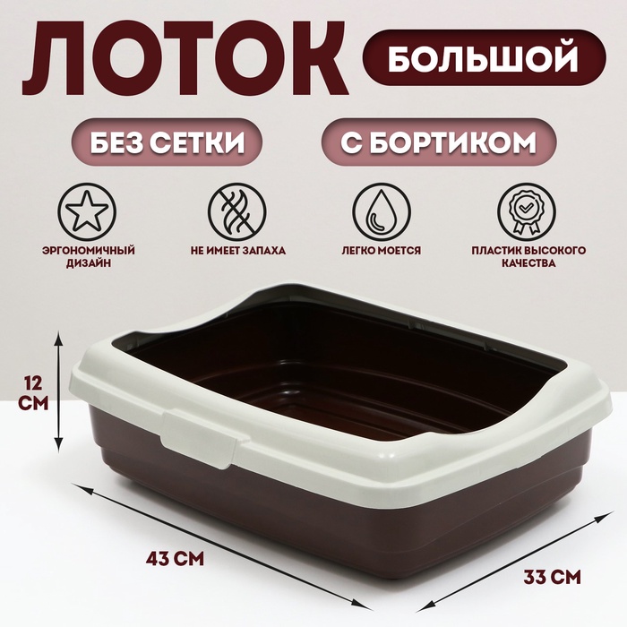 Лоток для кошек изготовлен из пластика, отвечает требованиям гигиены и безопасности, не имеет запахов, легко моется.