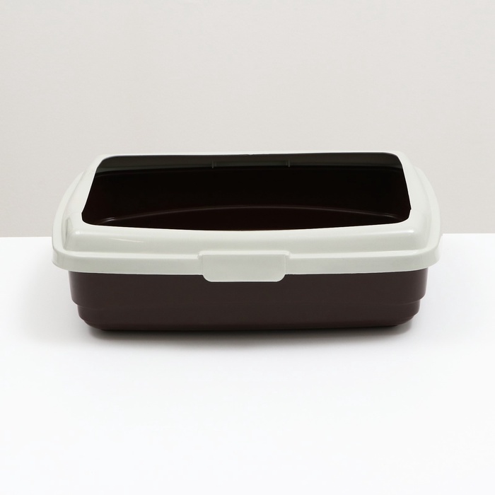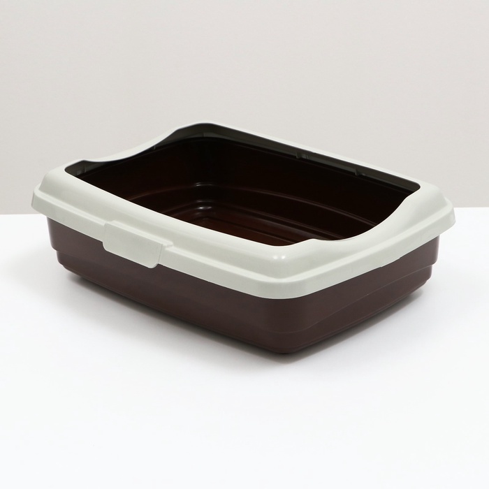 Пластиковый лоток для кошек с бортами удобен в использовании. Борт крепится защелками.