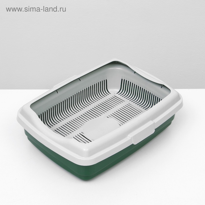 Лоток для кошек с высоким бортом и сеткой - это туалет в котором наполнитель не разбрасывается и пол остается чистым.