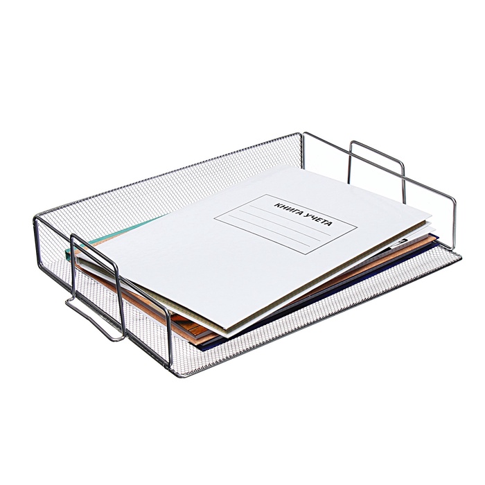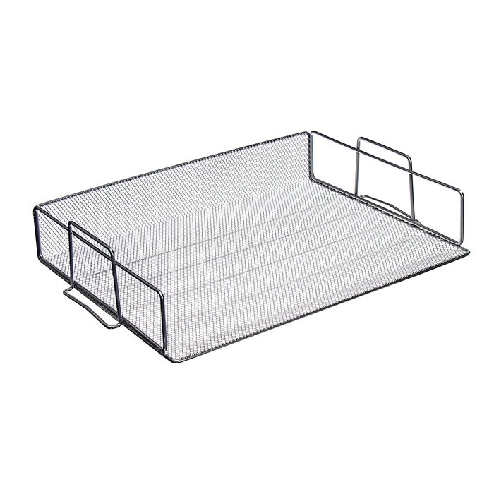 Добавьте на ваш стол элемент современного стиля и прочности. Этот горизонтальный лоток из серебристой металлической сетки создаёт чёткое место для документов, папок или журналов. Его открытая конструкция не выглядит громоздкой, а прочный металл гарантирует, что даже внушительная стопка бумаг будет надёжно зафиксирована.