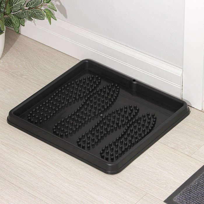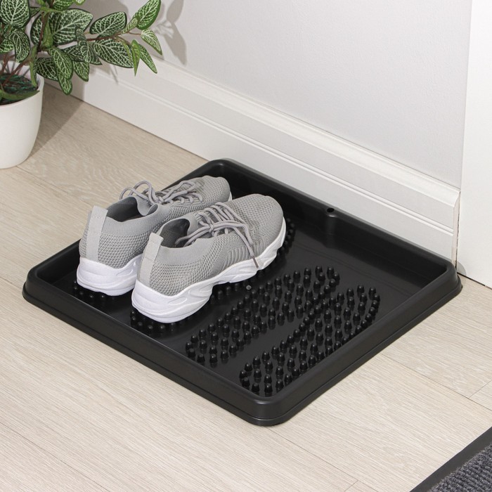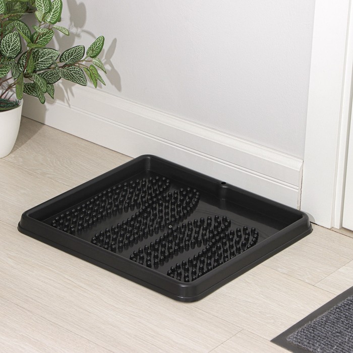 Лоток для обуви — практичный аксессуар, который поможет поддерживать чистоту и порядок в прихожей. Защищает покрытие пола от влаги и грязи. Выпуклости на дне лотка позволяют обуви избавиться от воды и просохнуть.