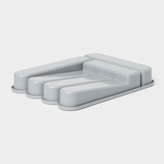 Прямоугольная форма экономит место в шкафу — можно ставить несколько лотков друг на друга. Серый матовый цвет нейтрален — не конфликтует с посудой любого стиля. Размеры позволяют мыть органайзер в посудомоечной машине. Подходит как для открытого хранения на столешнице, так и для систематизации содержимого кухонных ящиков.
