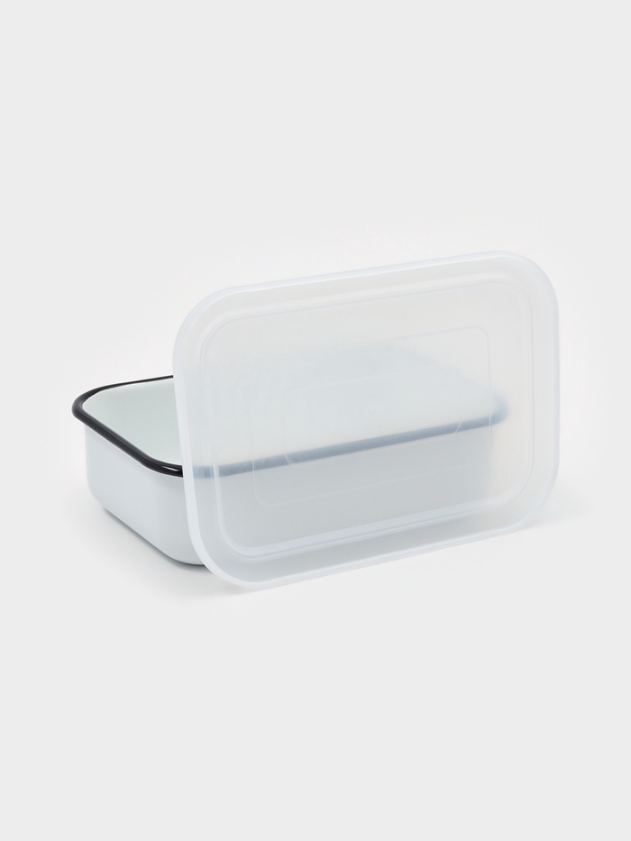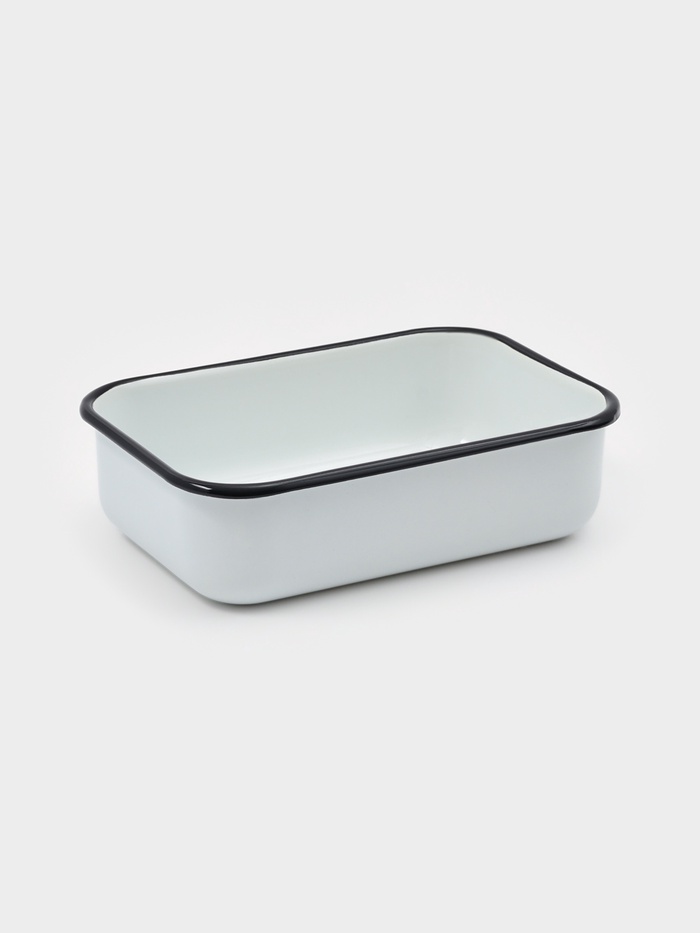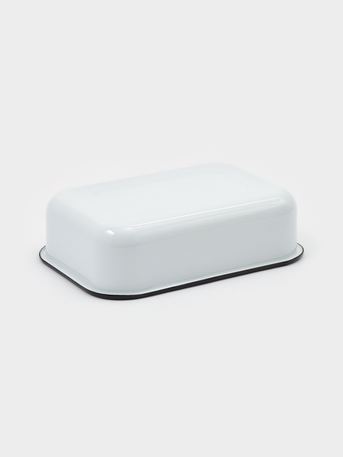 Эмалированный лоток с крышкой на 1,5 литра — это решение для хранения b транспортировки. Белый цвет, прямоугольная форма, гладкая поверхность: он не отвлекает, но справляется с задачей полностью.