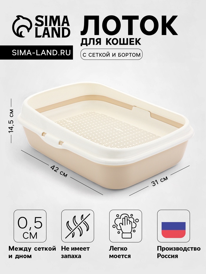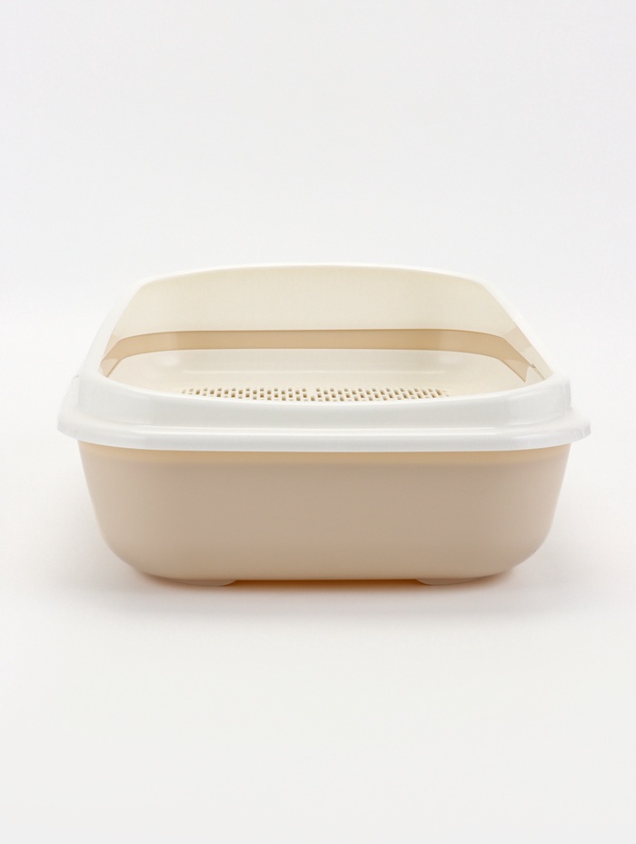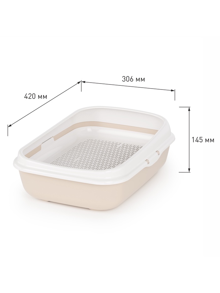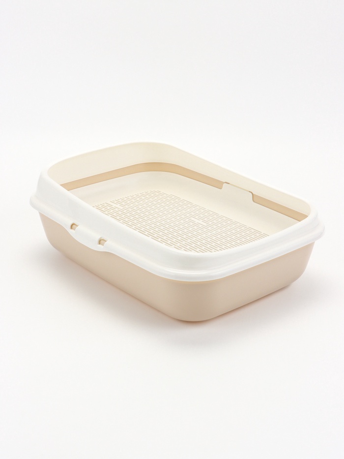Удобство в ежедневном использовании: Нейтральный бежевый цвет гармонично вписывается в интерьер. Лоток подходит для использования с любым типом наполнителя. Это практичный выбор для котят и взрослых кошек, который делает уход за питомцем проще и гигиеничнее.
