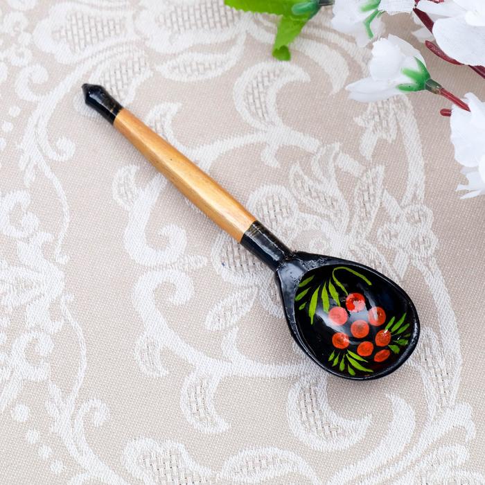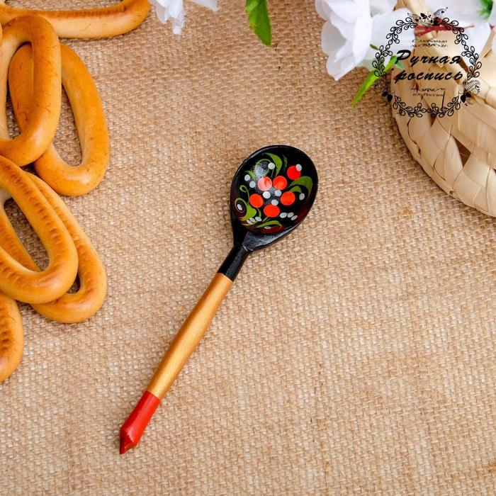 Деревянная ложка с хохломской росписью придаст чаепитию особый шарм и уют. Изготовленная из берёзы, она украшена ручной росписью в чёрных и золотистых тонах, что делает её не только практичным предметом, но и произведением искусства.