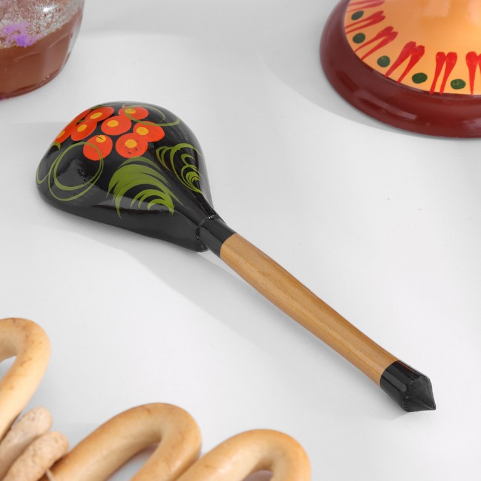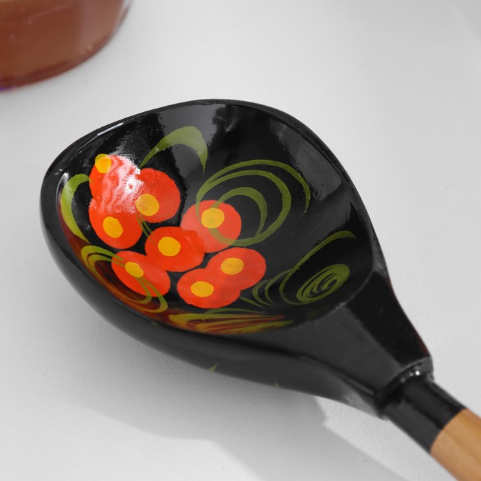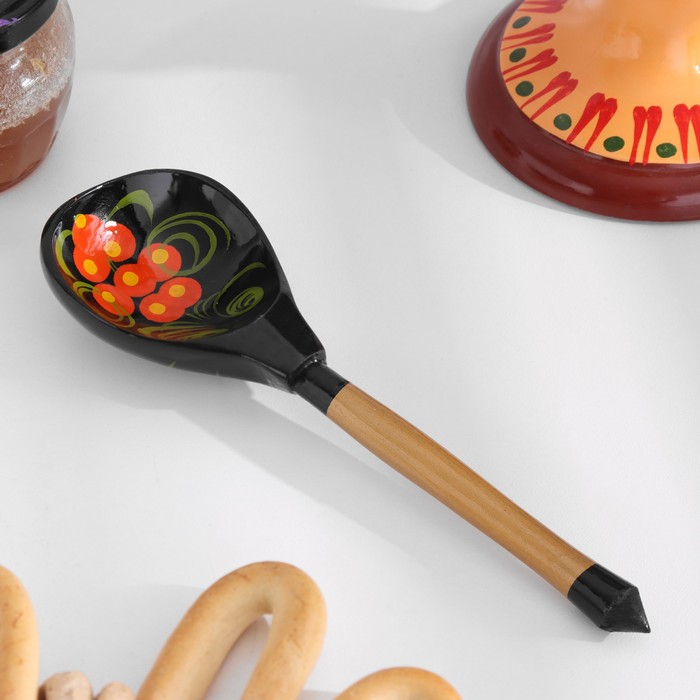Традиционные элементы Хохломы — ягоды рябины и земляники, цветы и листья, птицы, рыбы и звери.