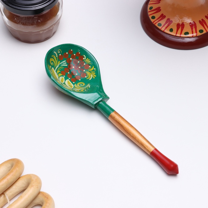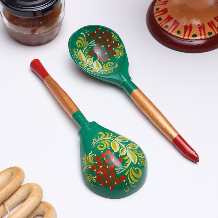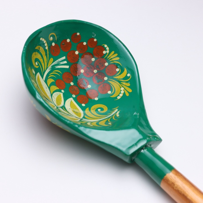 - Ручная роспись: узоры выполнены вручную, что делает каждую ложку уникальной и ценной как сувенир.