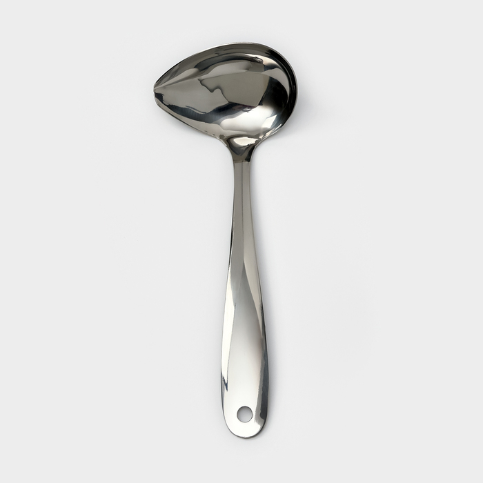 Изготовленная из нержавеющей стали, ложка имеет размер 26,5х10 см и толщину 3 мм, обеспечивая прочность, долговечность и устойчивость к механическим повреждениям. Её элегантный серебристый цвет и эргономичная ручка сделают подачу соуса не только функциональной, но и стильной частью вашего обеденного стола. С объёмом 50 мл, она идеально подходит для порций соуса, не перегружая блюдо.