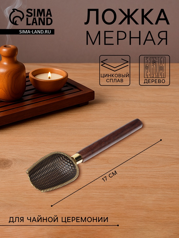 Мерная ложка для чайной церемонии из цинкового сплава и дерева, 17 см!